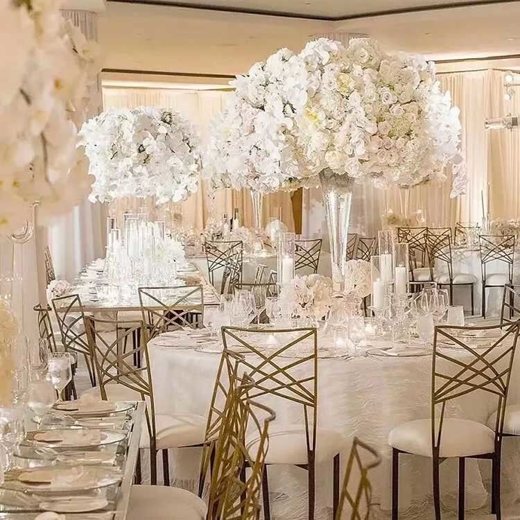 Stackable Luxury Metal Cross Back Gold Chameleon Banquet Wedding Chair